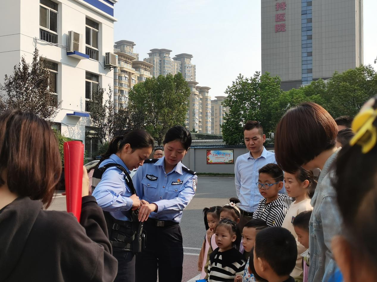 民警使用通俗易懂的语言形象生动的向小朋友们展示并介绍了常用单警装备的功能及使用规范。孩子们投入地观看着民警的演示,现场反响热烈。