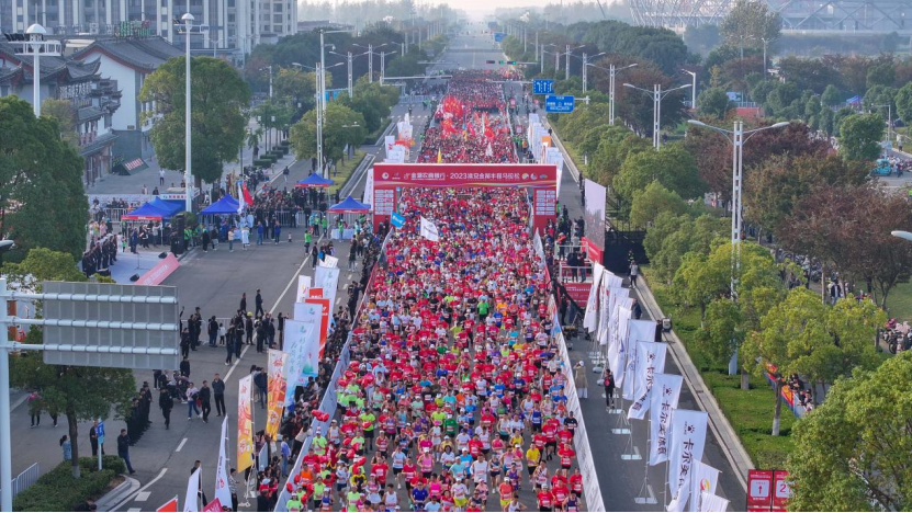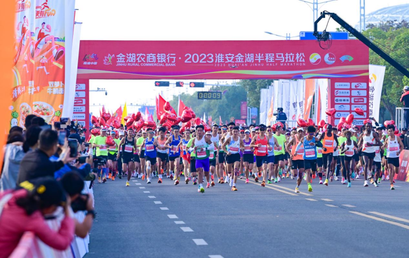 10月29日,2023淮安金湖半程马拉松鸣枪开跑,来自世界各地的一万多名跑友相聚金湖。