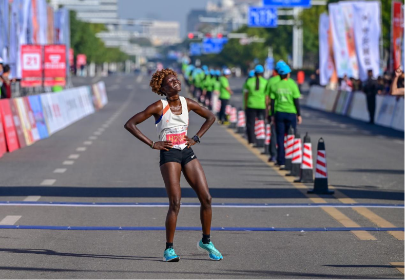当旭日升起,一万多名跑友迈向金马赛道。经过激烈的角逐,来自埃塞俄比亚的MGOSA以1小时6分17秒的成绩冲破终点线,斩获半程男子组桂冠。肯尼亚的MUTHONI以1小时12分41秒的成绩荣获半程女子组冠军。
