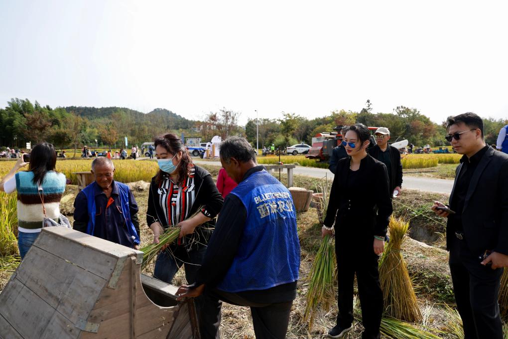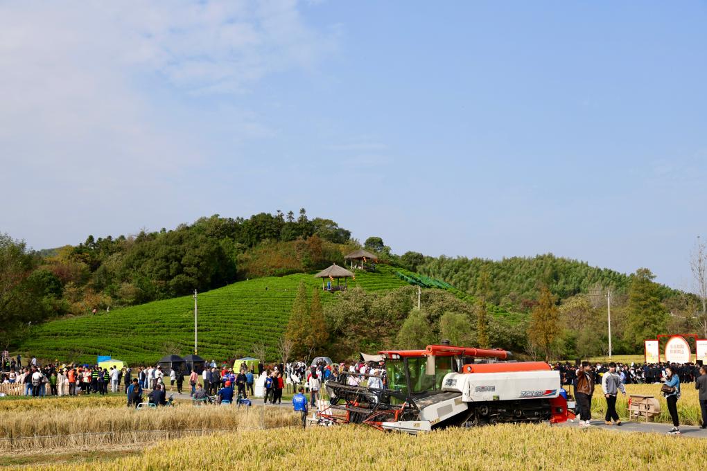 丰收市集、割稻打稻、萌宠喂养、趣味套鹅、戏曲表演……当天,来自五湖四海的游客和村民一起,庆丰收、游乡村、赏美景、看民俗、品美食,分享丰收的喜悦。