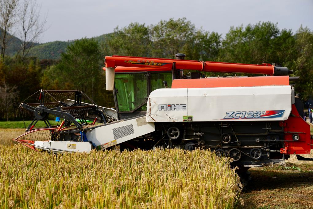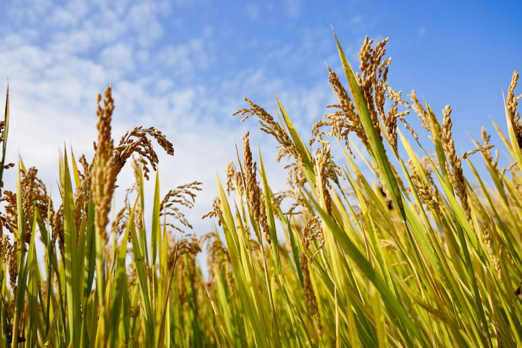 稻浪如海,流水潺潺,沃野田畴尽是丰收景象。