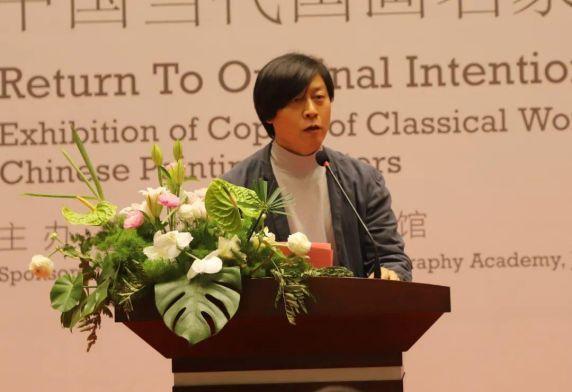 首都师范大学美术学院院长、博士生导师王海滨作为艺术家代表发言。他说展览的规模体量感人,展陈效果独具匠心,展出的作品水准高深,共同呈现老中青三代艺术家对传统、对经典的坚守和对传承创新的可贵探索,启发了同仁们在借古开今、中西文化对话等方面的深入思考和实践,推动传续经典、融创世界优秀文化因子,实现守正创新。