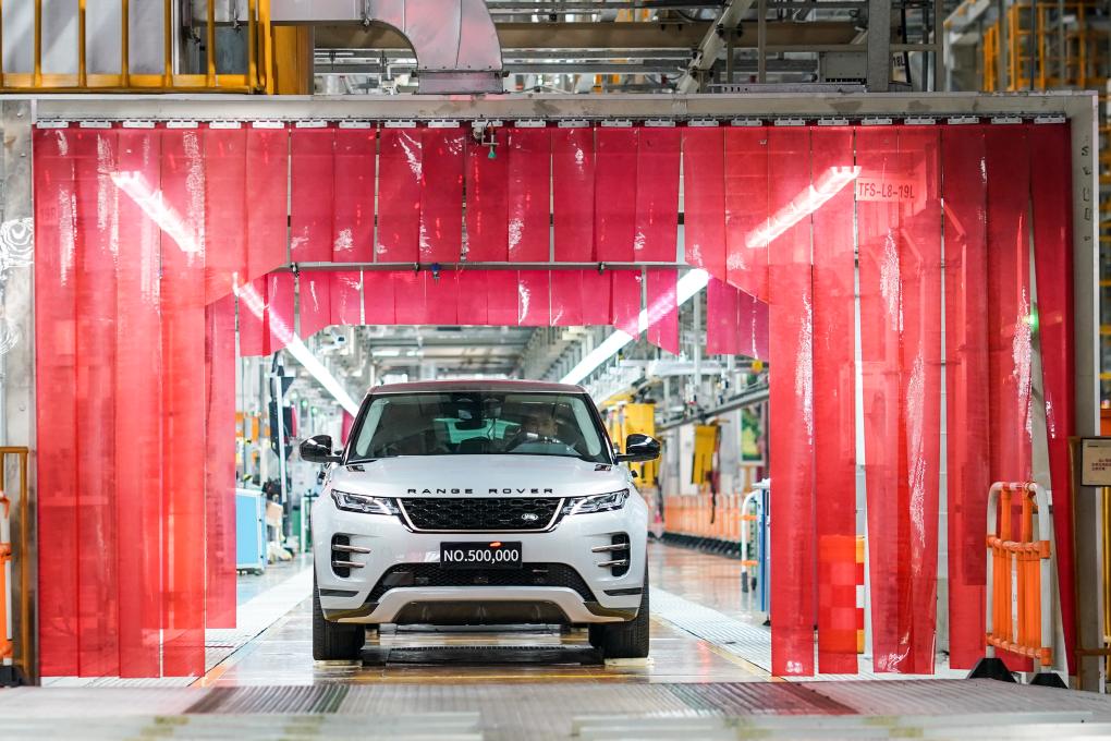 10月31日,在奇瑞捷豹路虎汽车有限公司常熟生产基地,一辆揽胜极光L汽车驶下生产线,这是该基地生产的第50万辆整车。
