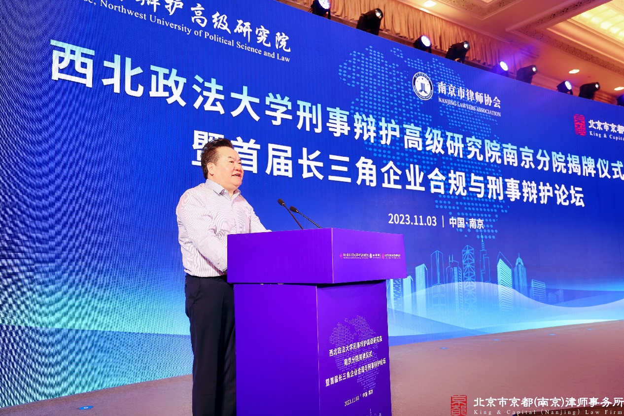 11月3日上午9点,由西北政法大学刑事辩护高级研究院、南京市律师协会、北京市京都(南京)律师事务所联合主办的西北政法大学刑事辩护高级研究院南京分院揭牌仪式暨首届长三角企业合规与刑事辩护论坛在南京东郊国宾馆正式举办,200多名国内知名专家学者、律师代表出席本次活动。