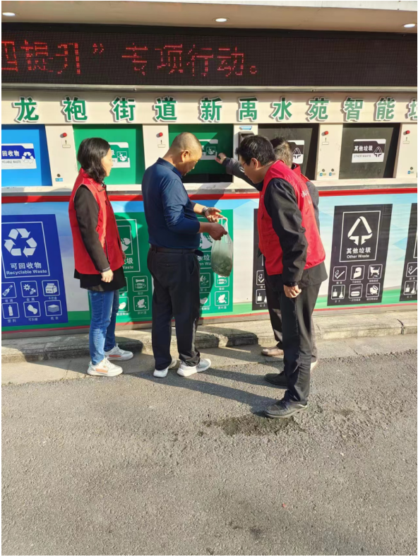 “垃圾分类体验周”活动从10月26日正式开启。10月27日,龙袍街道组织居民开展垃圾分类体验观摩活动。活动第一站,参观龙袍街道省级达标小区新禹水苑,党员志愿者在小区垃圾分类亭房前进行桶边指导,现场普及如何正确分类投放,避免垃圾混投,提升垃圾分类准确率。第二站,龙袍街道垃圾分类收集分拣站。大家全面了解大件垃圾及可回收物处理的方式和途径。第三站,龙袍街道垃圾分类宣教馆。“凡星”志愿者带领大家观看垃圾分类宣传视频,现场进行垃圾分类趣味问答、知识竞赛等环节。活动最后一站在龙袍街道孙赵村的生活垃圾收集站。在垃分办工作人员的讲解下,大家仔细地观看中转站工作人员操作机器压缩打包其他垃圾的过程。