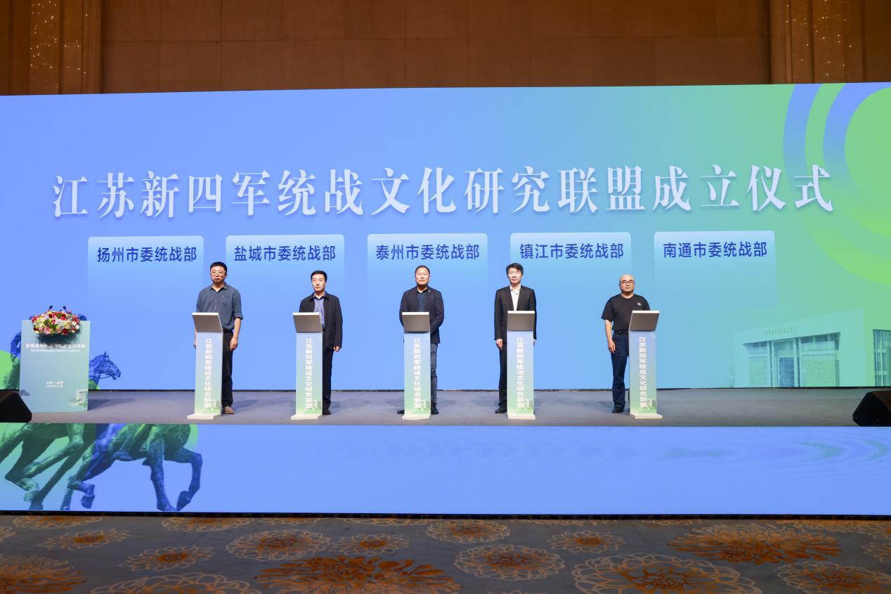 南通市、盐城市、扬州市、镇江市、泰州市委统战部代表共同签约成立江苏新四军统战文化研究联盟,并发布联盟倡议书。