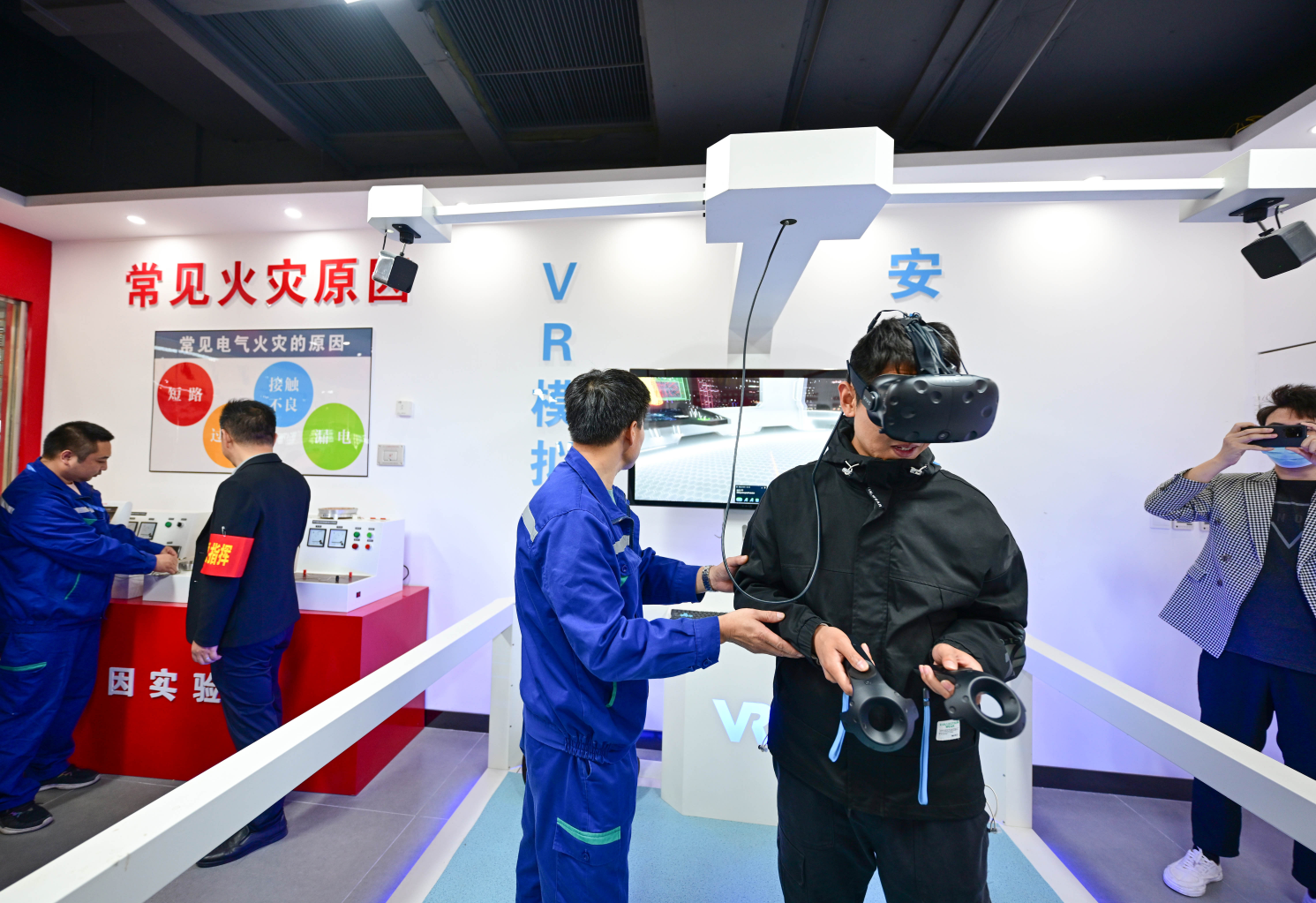 在江苏省淮安市金湖县苏宁易购消防科普体验馆,市民进行VR安全体验