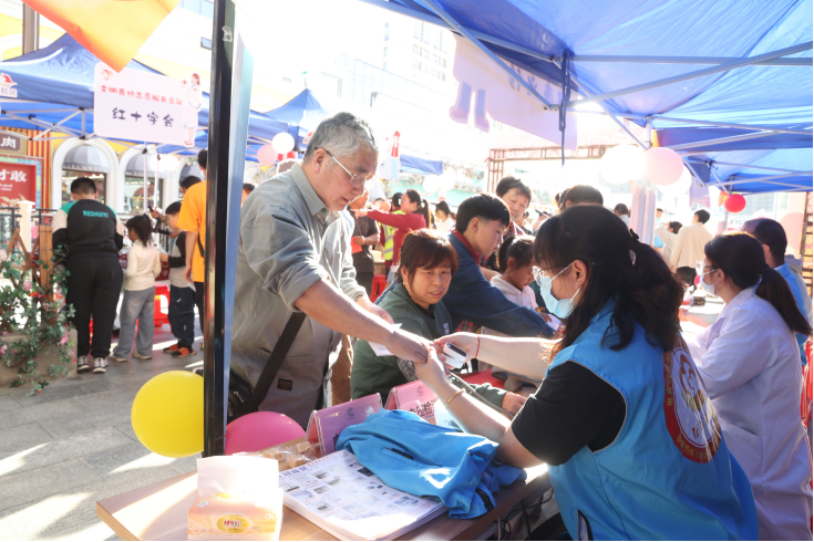 健康义诊区域,红十字会志愿者和医护人员免费为群众量血压、测血氧,针对群众咨询的各种医疗健康问题给予耐心解答,并指导有既往病史的群众如何服用药物、营养饮食和适量运动,专业的服务与敬业的态度获得现场居民的连连称赞。活动现场还开设“文明城市创建小达人”“小小石榴籽”等趣味打卡窗口,用一场“城市行走”推动基层更多“文明”最佳。