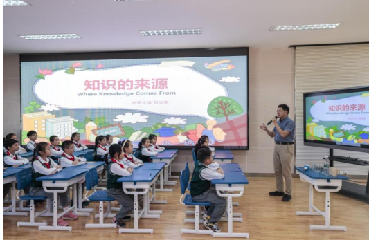 “科学的精神,就是要具有怀疑的态度,独立地判断、大胆地假设、小心地求证。”南京大学哲学系博士研究生金昕以《知识的来源——从一个有趣的化学实验谈起》为主题,为南京市第二十九中学天润城分校师生开展了一堂别开生面的儿童哲学公开课。