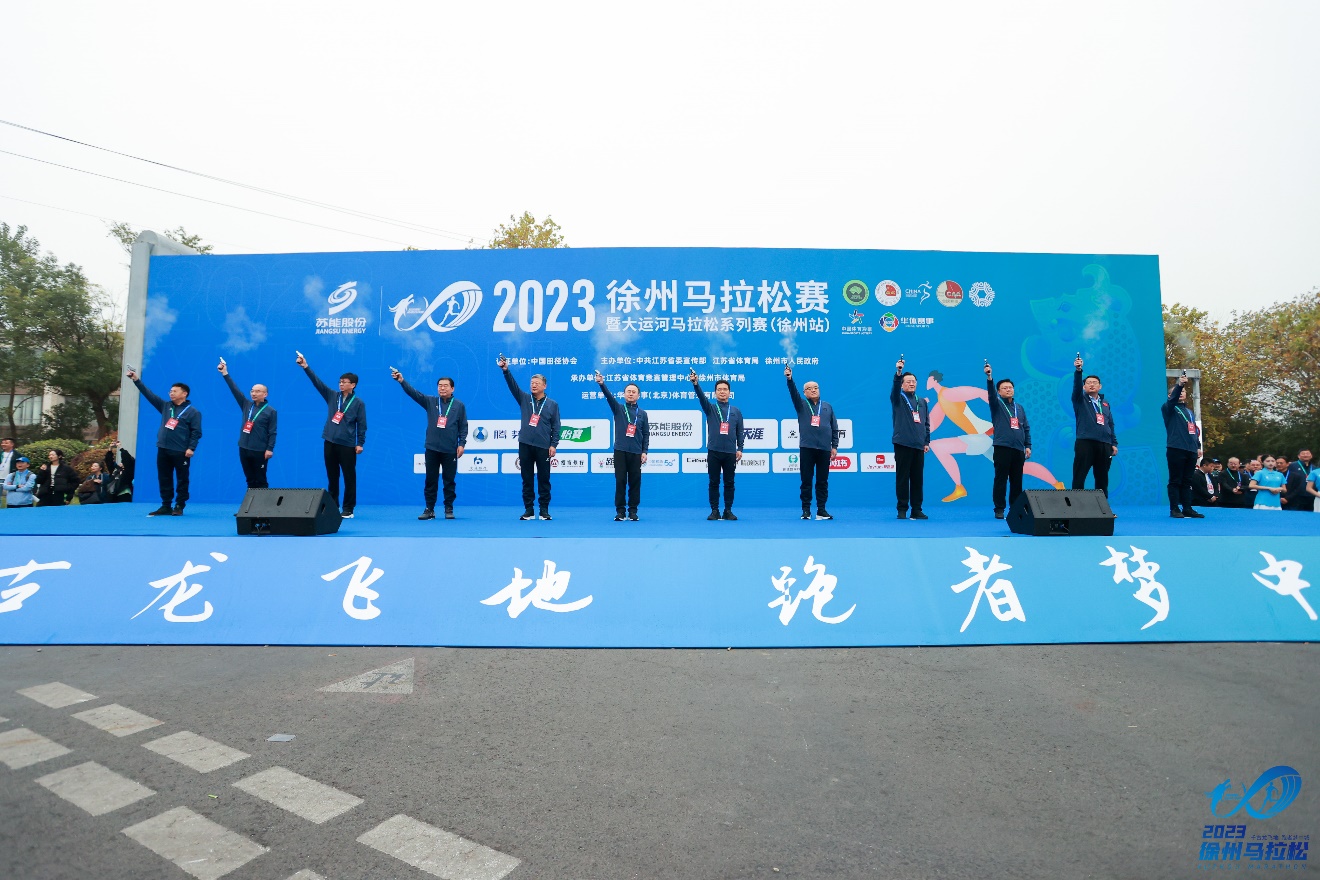 中国田协副主席王孺牛,中国铁三协会副主席张健,江苏省体育局副局长刘彤,中共徐州市委书记宋乐伟,中共徐州市委副书记、市长王剑锋,徐州市人大常委会主任王安顺,徐州市政协主席王强,徐州市政府副市长吴卫东,徐州市政府副市长、市公安局局长杨健,徐州市政府秘书长周天文,赛事冠名赞助徐矿集团党委副书记于洋、华体集团副总裁王成等出席起跑仪式,共同为比赛鸣枪开跑。