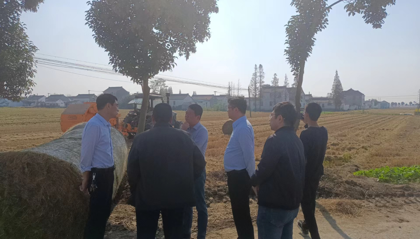 在合陈镇锦贤村,王晓秋实地查看打捆现场并询问了秸秆“双禁”工作开展情况,详细听取了机械调配、秸秆打捆离田、犁耕深翻和秸秆综合利用等情况的汇报。