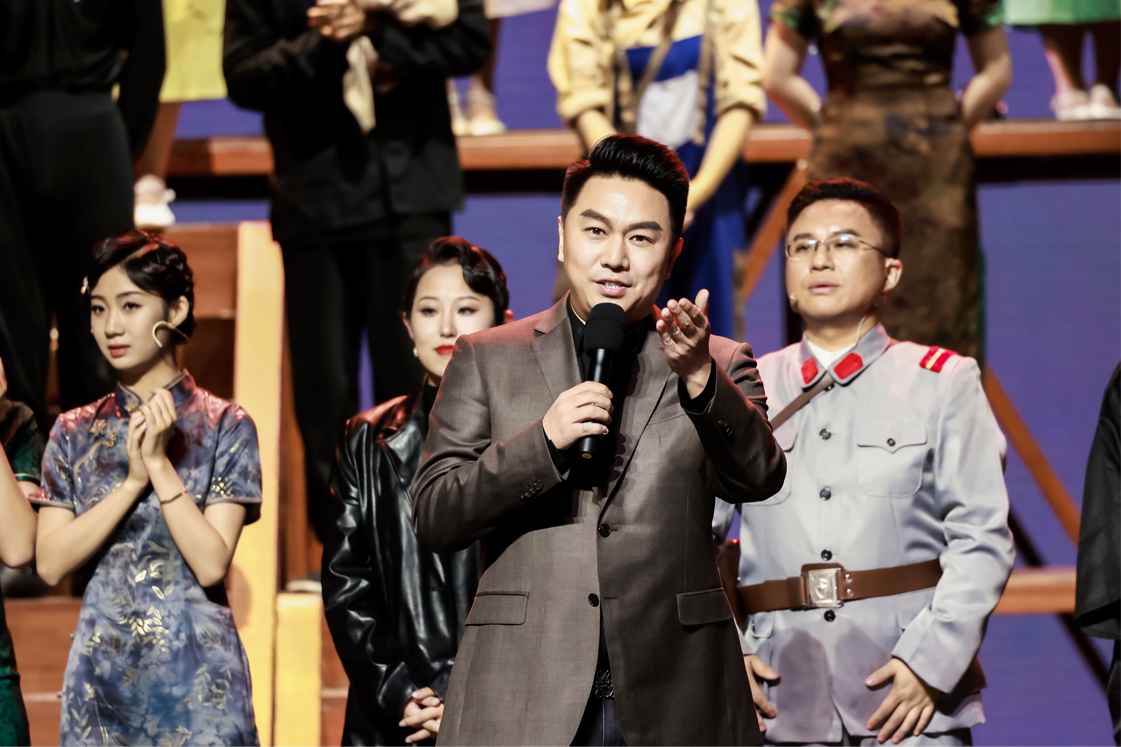 演出结束时,《沧海·一粟》总导演、南艺音乐剧系主任姜孝萌上台发言