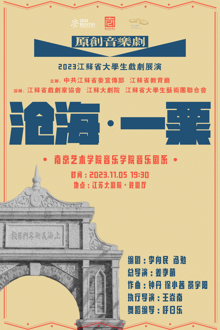 音乐剧《沧海·一粟》由南京艺术学院党委副书记、副校长李向民教授和他的博士生冯勉先生担纲编剧,李向民编剧作品曾荣获中宣部五个一工程奖、飞天奖、星光奖等;南京艺术学院音乐学院音乐剧系主任、曾荣获文化部文华剧目奖、文华表演奖的姜孝萌教授担任导演。该剧小剧场初创版曾荣获中共江苏省委宣传部2021年紫金文化艺术节小剧场单元“剧目奖”、“最佳表演奖”、“最佳舞美奖(舞美设计、灯光设计)”四项大奖,及第八届北京大学全国音乐剧学院奖。此次参加展演的是2023年度全新打造的大剧场版本。