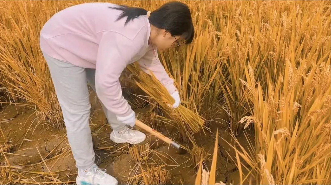 经老师介绍,同学们才知道,这片稻田里有很多稻子是学长学姐们在夏天的时候在这里栽种的呢!从播种到收获,这样的一个闭环劳动过程着实值得纪念!