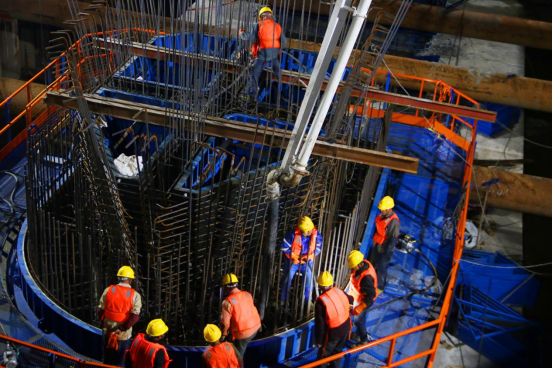 图为崇启公铁长江大桥s09号墩右幅第一节墩身混凝土浇筑情景。2023年11月8日,孟庆虎 摄