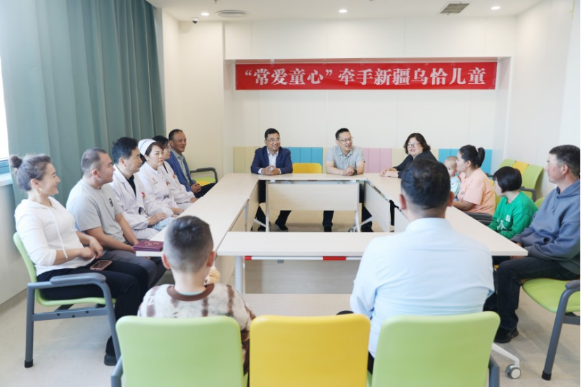 11月8日上午,共青团常州市委、市慈善总会、市卫健委有关人员来到市儿童医院,看望3名来自新疆乌恰的先心病患儿。爱心企业中华恐龙园也为这3个特殊家庭开辟绿色通道,邀请新疆乌恰儿童家庭体验常州的文化和风土人情。(李南丹 报道员:杨小霞)