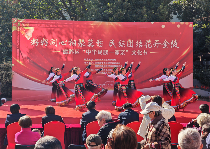 11月7日,籽籽同心相聚莫愁 民族团结花开金陵——南京市建邺区“中华民族一家亲”文化节在莫愁湖街道明园社区“红石榴广场”成功举办。