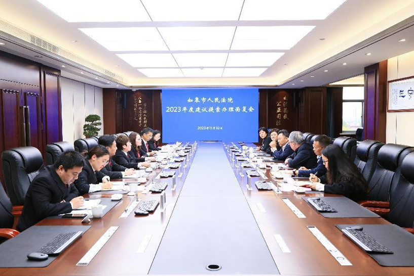 为进一步提高建议提案办理质效,回应代表委员关切,主动接受监督,11月10日上午,如皋法院召开2023年建议提案办理面复会。市人大常委会监察和司法工委主任何福平及江苏元辰安装集团有限公司董事长张彬、 江苏路翔交通工程有限公司董事长周红梅等代表委员应邀出席会议。院党组副书记、副院长顾雪红,党组成员、副院长任锋及部分建议提案承办部门负责人参加会议。