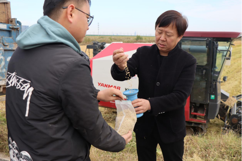 兰花塘的62号田块迎来验收,稻浪间不时有人影攒动。江苏省农业技术推广总站的技术人员、沈其荣院士团队成员、南京市农业技术推广站的技术人员、浦口区农业农村局相关技术人员以及试验田的种植农户等深入田间地头,仔细查看水稻长势和种根情况。为了确保测产数据的准确性,省农业技术推广总站技术人员采取了一系列严格的措施,科学地选取了实测田块,不仅四次测量了田块的面积,还对不同批次的稻谷进行了多次水分检测。整个过程中,数据被认真记录,并进行了称重、脱粒、去杂质和扣损等关键步骤,以精确计算出试验田块的亩产量。这一系列严谨规范的操作,保证了测产过程的高标准和精确性。