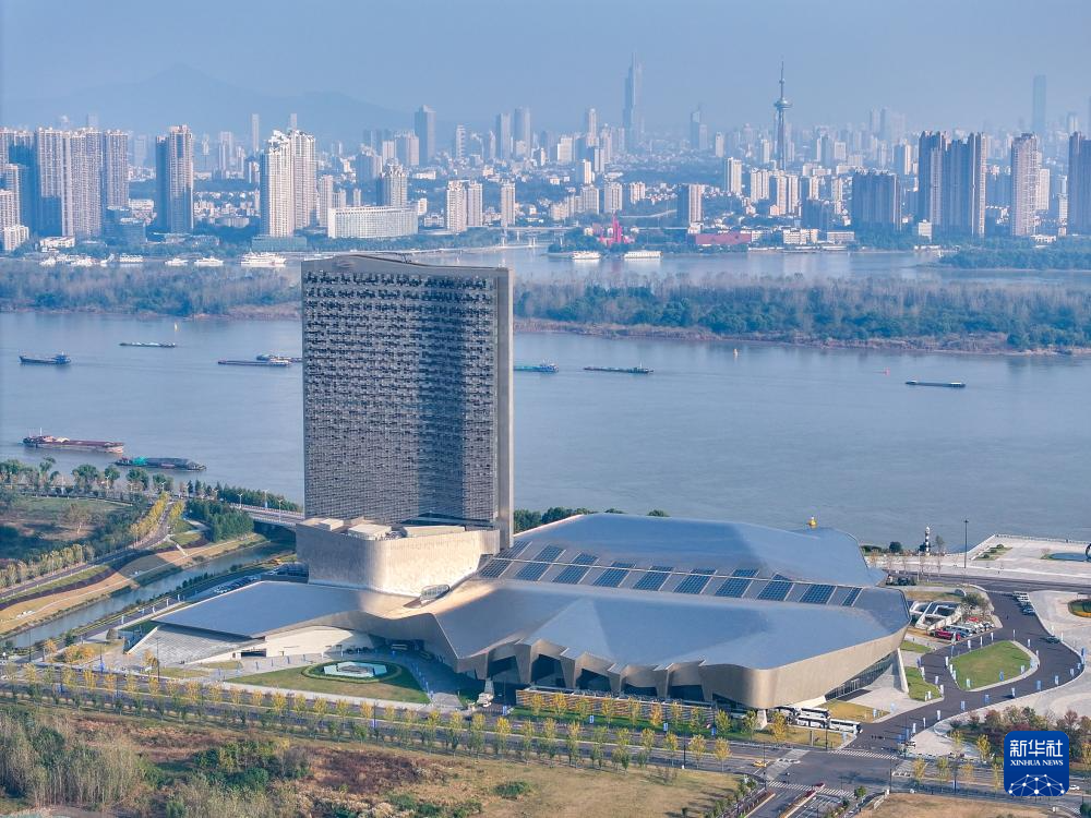 11月14日,2023两岸企业家峰会10周年年会在江苏南京扬子江国际会议中心举行(无人机照片)。