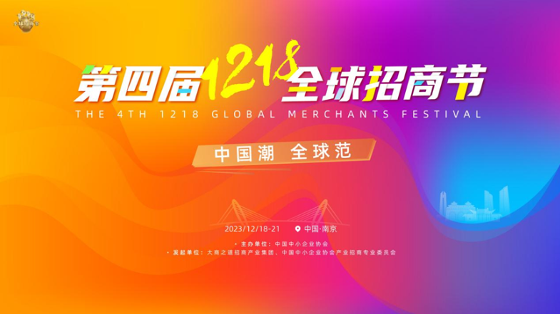 由中国中小企业协会主办,大商之道招商产业集团、中国中小企业协会产业招商专业委员会发起并承办的“第四届1218全球招商节”将于12月18日至21日在南京举行,主题为“中国潮•全球范”。