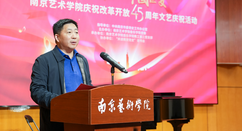 吴伟在致辞中表示,近年来,市委党史办坚持开门办史、开拓创新,扩大交流合作,积极推进党史学习教育常态化长效化,努力形成“大党史”格局。党史部门和高校合作理所应当、势在必行,也恰逢其时,围绕本次文艺庆祝活动主题,市委党史办与南京艺术学院精心编排了10多个节目,共同唱响改革开放时代赞歌,展现民族复兴使命担当!他希望通过活动,也进一步激励广大干部群众在赓续红色血脉上实现新作为,在传承红色基因中展现新担当,切实推动改革创新常态化长效化走深走实。