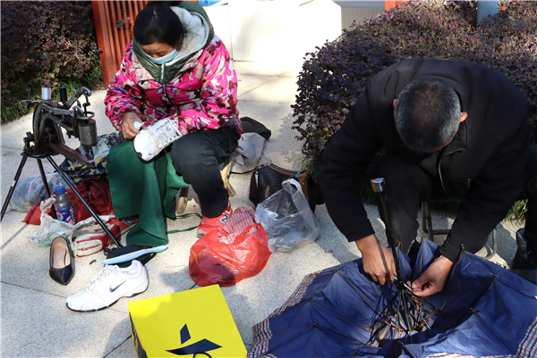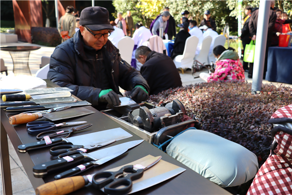 老行当便民惠民服务板块中,磨刀、修伞、修鞋、缝纫、理发等项目,这些老行当虽然看似简单,但却是社区居民日常生活中不可或缺的一部分。活动现场,老行当师傅们忙碌而有序地为居民们提供服务,让居民们感受到了社区的温暖和关怀,感受到传统手艺人的精湛技艺。