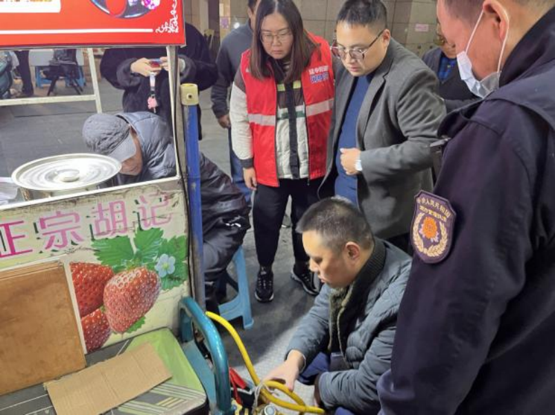 此次行动主要对辖区非餐饮场所商户和流动摊点使用的燃气或液化气管线是否老化损坏、是否使用合格的储气瓶并按规定定期检验等方面进行了全面检查。对存在风险隐患的问题点,社区邀请燃气公司专业人员现场更换金属波纹软管,安装截断阀。