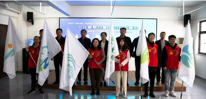 罗塘街道曹家等6个社区向志愿者授予印有LOGO的旗帜