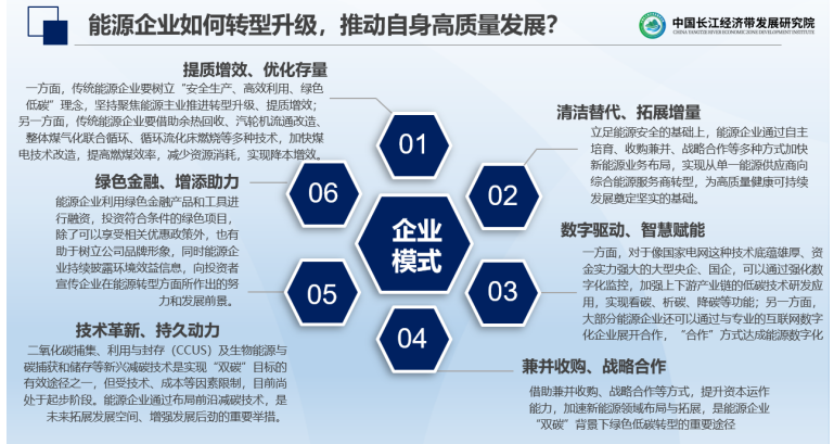 袁羽钧对能源企业如何转型升级,推动自身高质量发展,也提出了发展建议,聚焦提质增效、优化存量;清洁替代、拓展增量;数字驱动、智慧赋能;兼并收购、战略合作;技术革新、持久动力;绿色金融、增添助力。