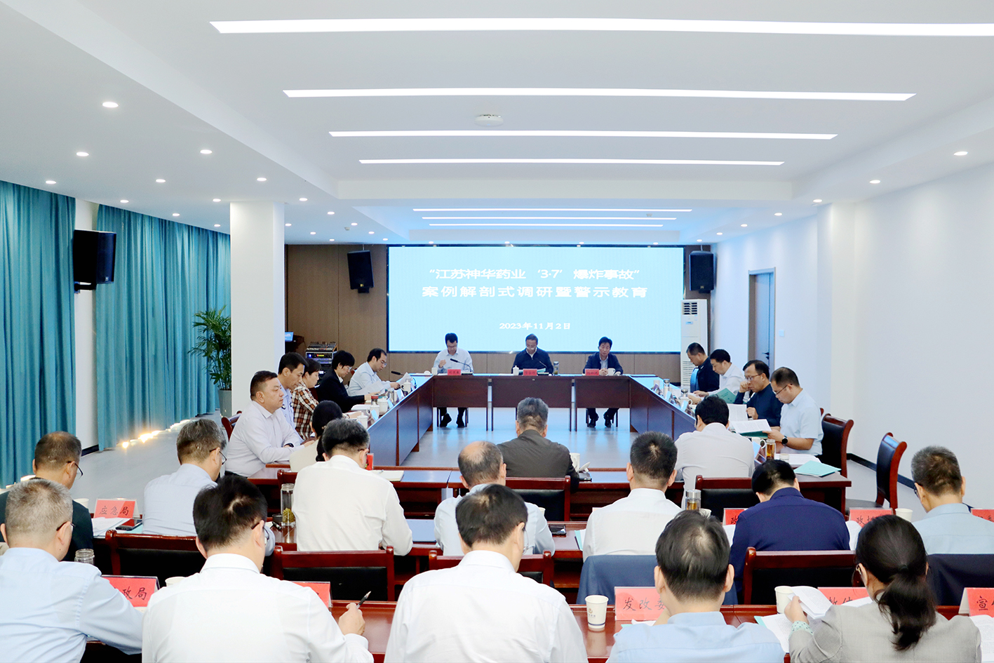11月2日,金湖县召开“江苏神华药业‘3·7’爆炸事故”案例解剖式调研暨警示教育专题会议,深刻汲取事故教训,全面检视整改成效,坚决筑牢安全防线,更好统筹发展和安全,实现高质量发展和高水平安全良性互动。