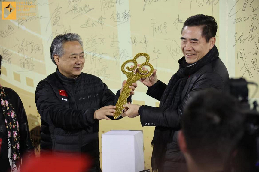 夜色中,中华门内城墙上苍翠欲滴、祥云环绕,星光璀璨的画面通过光影透出,如梦似幻。中国电影表演艺术学会会长陈宝国在一百多位表演艺术家的瞩目中用金钥匙开启了2023中国电影表演艺术周。同时,宣告中国电影表演艺术周正式落户南京。