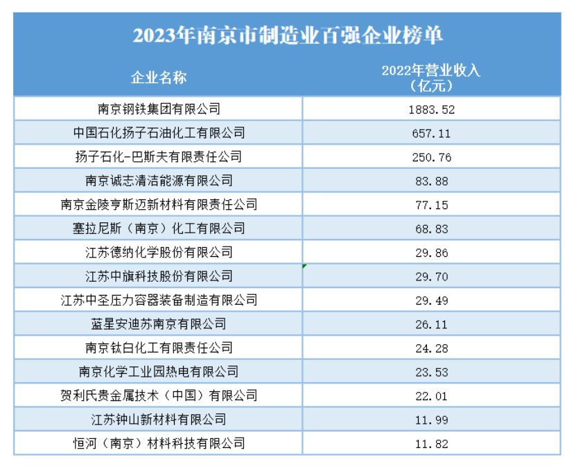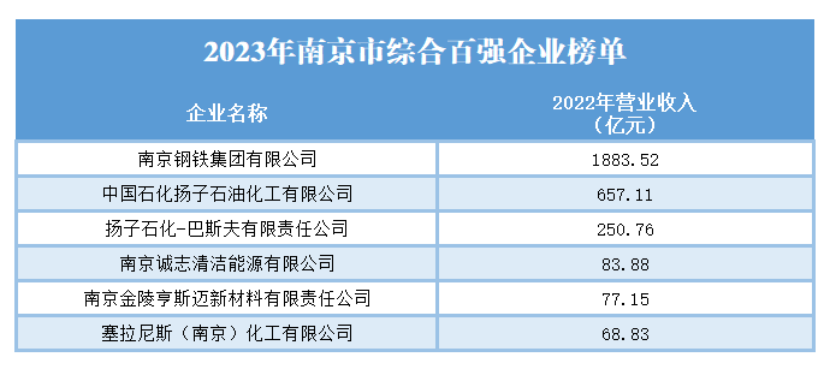 近日,南京市企业联合会、南京市企业家协会联合发布了南京市企业百强榜单,包含了综合百强、制造业百强、服务业百强和成长型50强企业入围名单。