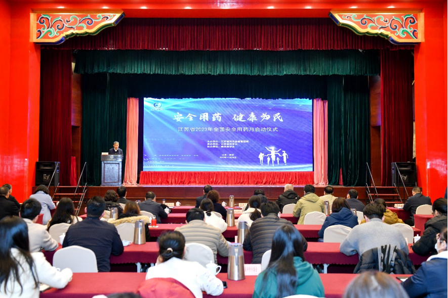 11月28日,由江苏省药品监督管理局主办,江苏省药学会承办、南京药学会协办的江苏省2023年“全国安全用药月”启动仪式在南京举行。江苏省药品监督管理局二级巡视员张春平、江苏省药学会理事长胡晓抒出席启动仪式。省药监局有关处室、南京检查分局、直属单位领导,以及有关药学专家、企业代表、新闻媒体等各界代表近80人参加启动仪式。