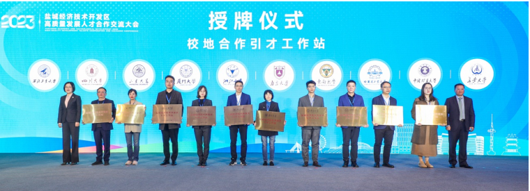 会上,举行了“1992人才会客厅”启用仪式,复旦大学盐城先进汽车照明技术校企联合研究创新中心正式揭牌,10所校地合作引才工作站现场授牌。现场还为10家人才引进突出贡献单位和5位爱才企业家颁奖。12个产学研和人才项目集中签约。