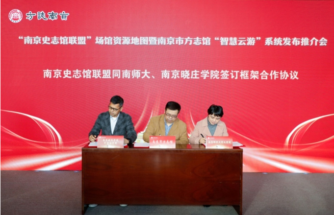 活动现场,省方志馆副馆长沈萌溦、市志办一级调研员姚卫国为各区志办史志馆联盟联络员颁发证书,感谢他们为全市史志馆联盟工作作出的贡献。市文投集团副总经理闻一武为南京市方志馆颁发“世界文学之都地标网络”牌匾,为南京史志馆联盟建设引入高校资源,强化馆校合作,更好地研究传播南京地域文化。南京市方志馆代表南京史志馆联盟同南京师范大学文学院、南京晓庄学院外国语学院签订了馆校共建合作协议。(苏文)