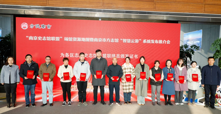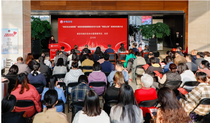 11月29日下午,“南京史志馆联盟”场馆资源地图暨南京市方志馆“智慧云游”系统发布推介会在南京市方志馆举行。江苏省地方志办公室党组书记、主任左健伟,市地方志办公室党组书记、主任姜巧玲,市委党史办副主任黄莹、市档案馆副馆长王长喜、市文旅局一级调研员胡庆德、市妇联副主席魏群、团市委一级调研员郑家芳、市文投集团副总经理闻一武、江苏省方志馆副馆长沈萌溦、南京师范大学文学院党委书记余琼、南京晓庄学院外国语学院党委书记马传浩等出席活动并共同启动“南京史志馆联盟”场馆资源地图上线仪式。市委组织部、市委宣传部、市委网信办、市大数据局、市社科联相关处室负责同志,省、市、区志办代表,南京史志馆联盟成员单位代表等90余人出席活动。市志办党组成员、副主任汤林平主持活动。