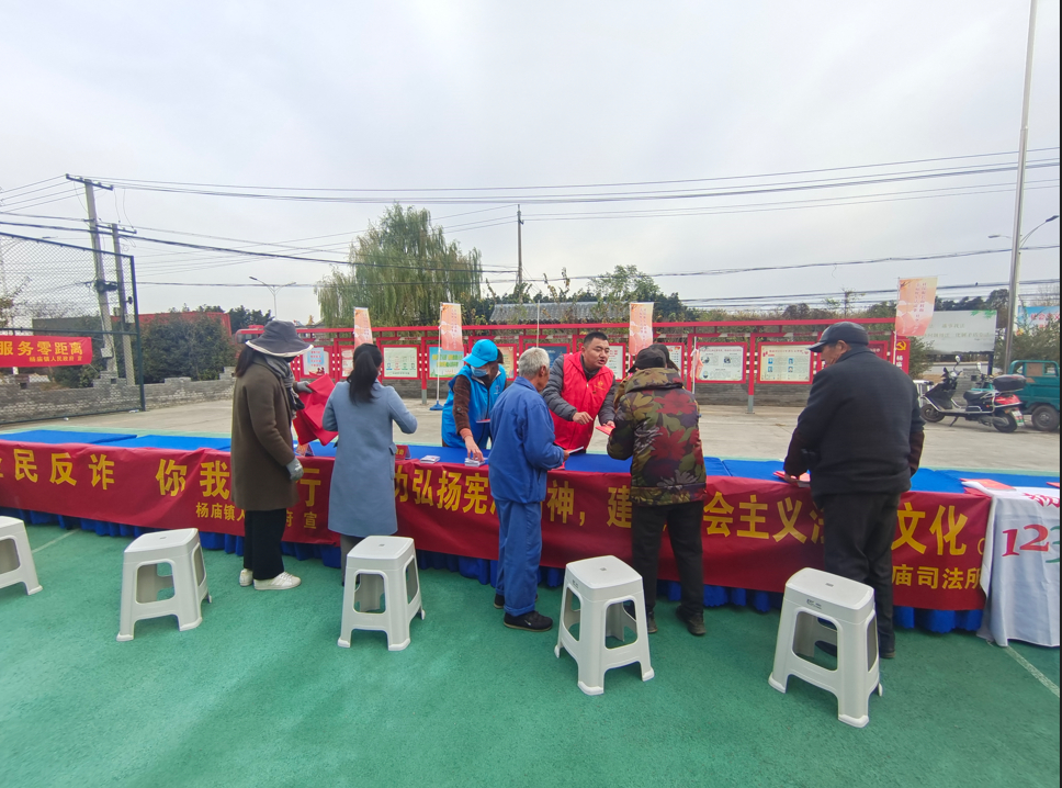 在“12·4国家宪法日”暨“宪法宣传周”到来之际,为进一步弘扬宪法精神,在全社会营造崇尚宪法、学习宪法、宣传宪法、遵守宪法、维护宪法的浓厚氛围,扬州市邗江区杨庙司法所联合社会治理局、社会事业局等多部门走进杨庙村,开展“宪法宣传周”宣传暨反诈宣传进乡村主题活动。