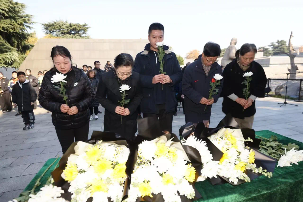 张学萍、黄兴华、葛凤瑾、曹玉莉等20位死难者遗属代表依次上前献花。