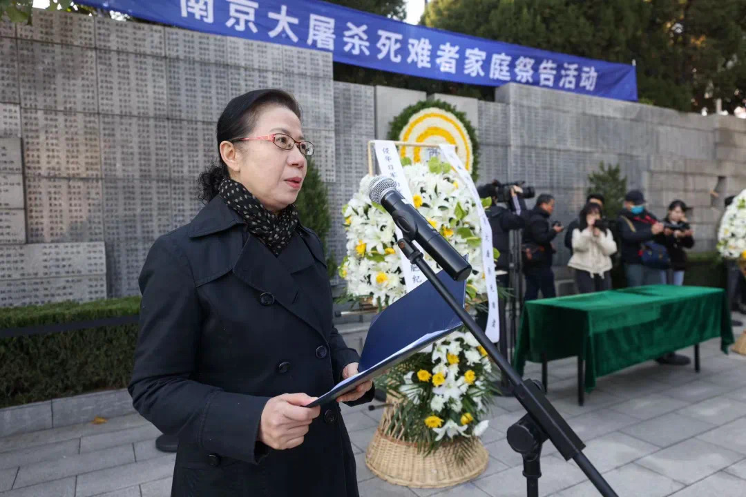 南京大屠杀幸存者后代、南京大屠杀历史记忆传承人代表曹玉莉说:“父母亲一直告诫我们,永远不要忘记被屠杀的亲人和同胞,要把南京大屠杀历史真相一代代传承下去。”