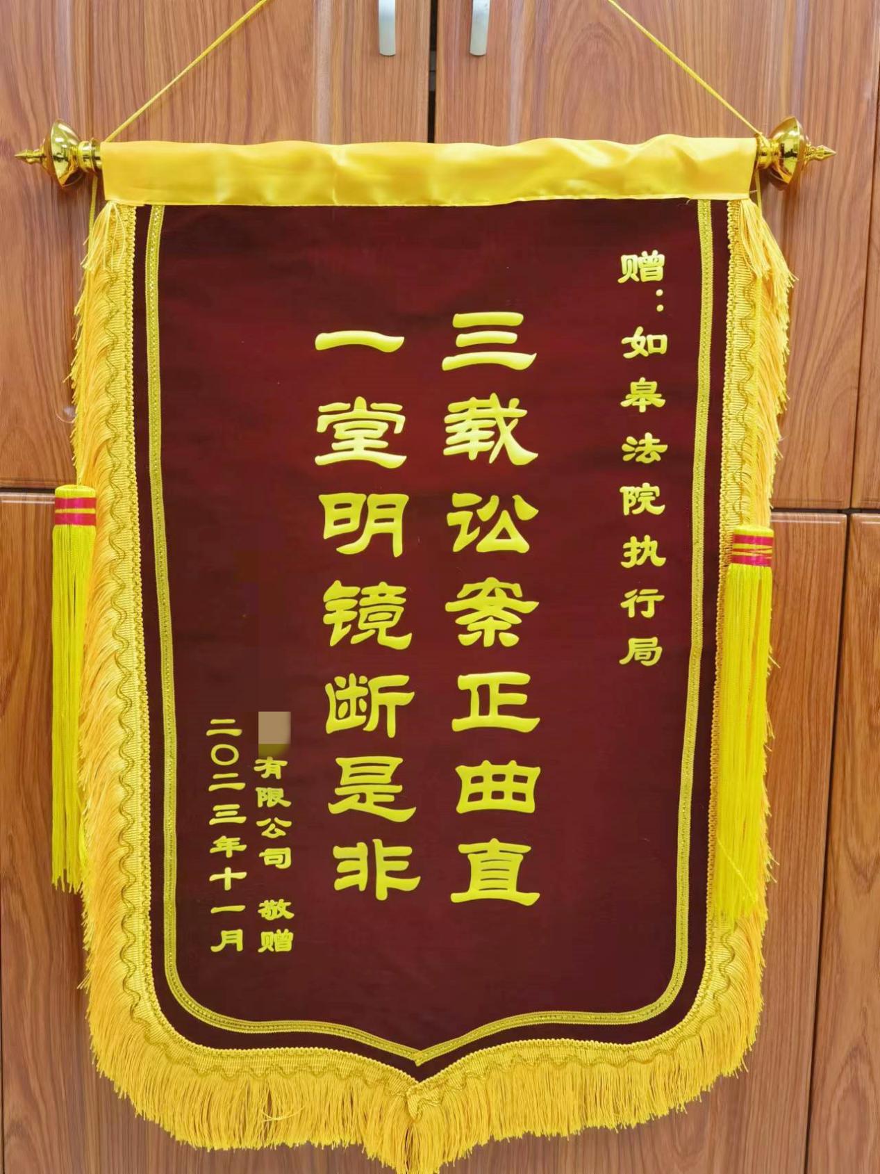 另一起票据纠纷的申请执行人南京某公司将一面鲜红锦旗邮寄到章海涛法官手中并对快执团队护航企业发展的举措表示高度认可。