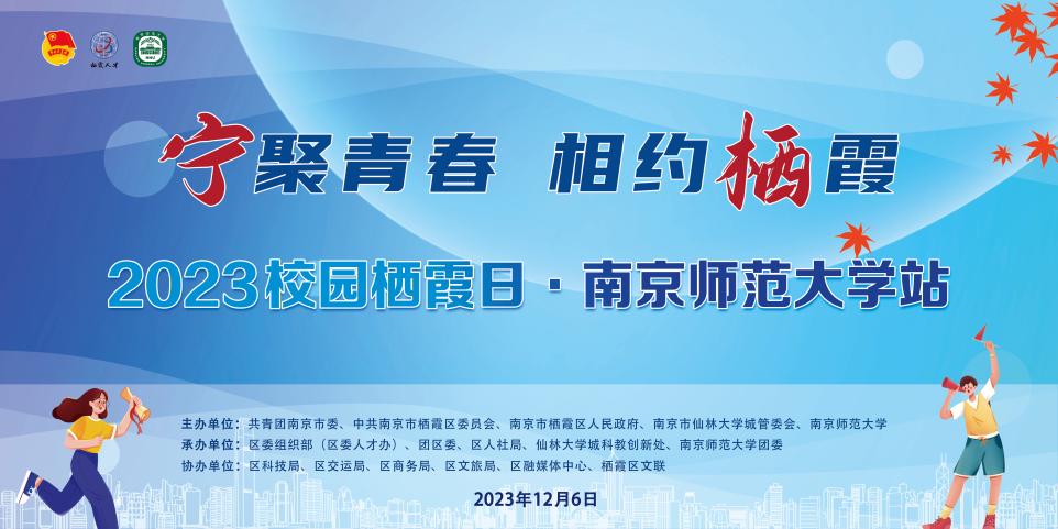 2023年迎新季,为让驻宁高校大学新生更快融入栖霞、了解南京,进一步加强高校人才与地方发展的双向融通,更好服务凝聚青年大学生,释放“双百共建”最大效能,由南京团市委、栖霞区委区政府、仙林大学城管委会共同主办的“宁聚青春 相约栖霞”— 2023"校园栖霞日"第三场活动在南京师范大学顺利举办。栖霞区委副书记储纲,南京团市委副书记翁侃,南京师范大学党委常委、宣传部部长宋喆,南京团市委相关部门、栖霞区相关部门街道、南京师范大学相关部门学院领导,优秀青年先锋、驻区企业代表、2023级大学新生和部分大学生代表等共同参加活动。