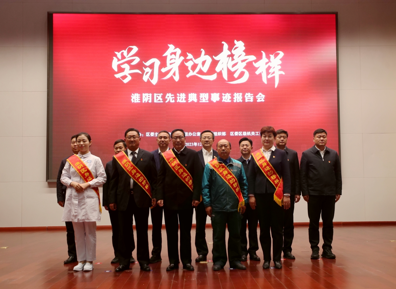 12月9日,淮安市淮阴区举行“学习身边榜样”先进事迹报告会,紧扣“学思想、强党性、重实践、建新功”总要求,充分发挥先进典型的示范引领作用,着力营造干事创业的浓厚氛围。王建军、陈张、张在明、张延峰、杨韬、李冬生、李鹏飞等区领导参加报告会,并与先进典型合影留念。