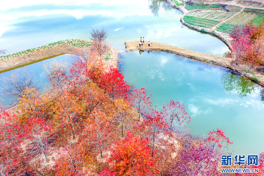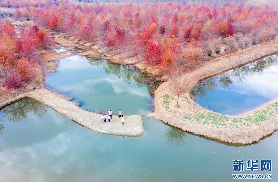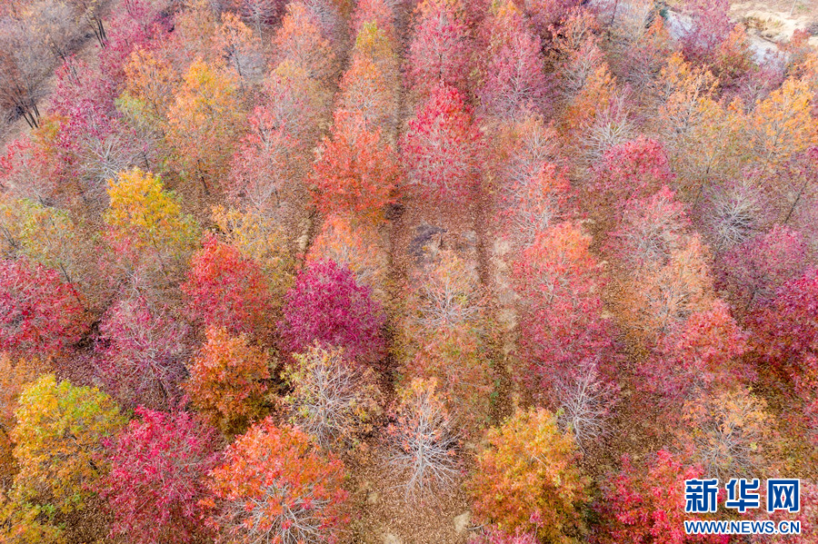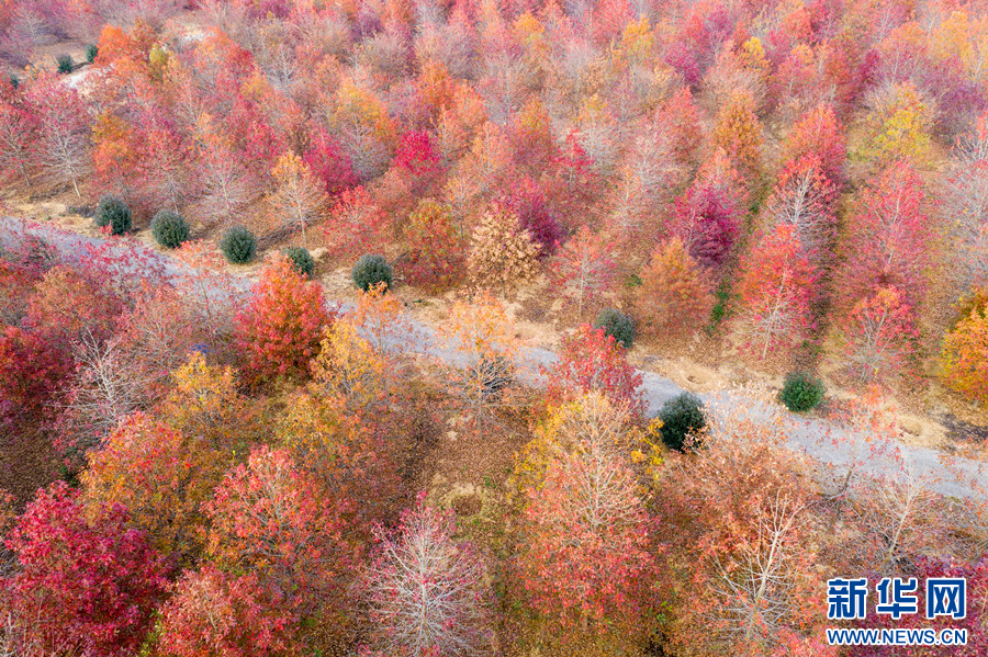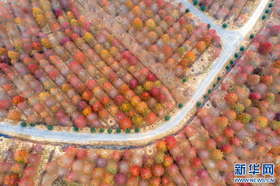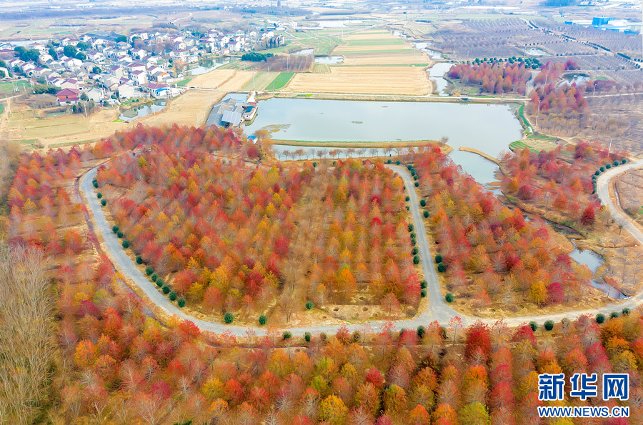冬日里,江苏句容白兔镇西井村成片的娜塔栎树开始华丽“换装”。