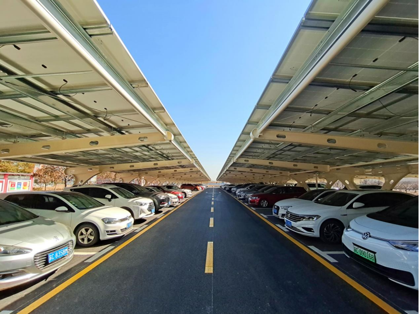 该公司新建光充一体化车棚,有132个新能源汽车专用停车位,32台新能源汽车智能光伏充电桩,可以同时满足64台新能源汽车充电,保证新能源通勤班车使用,积极引导员工绿色出行。车棚东侧设计安装光伏候车亭,候车亭顶部光伏组件自动为候车厅的电子宣传栏、液晶显示屏及宣传卷轴供电;兼有存储器、蓝牙、无线传输和视频播放功能,用来播放视频和音乐;另有感应式照明功能,可自动感应人体,提供夜晚LED照明。