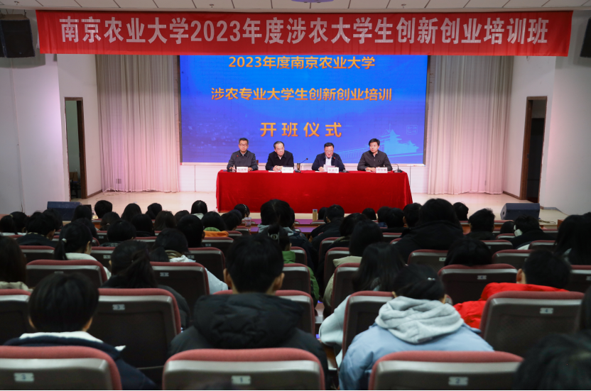 12月20日,2023年度涉农专业大学生创新创业培训在南京农业大学卫岗校区教四楼报告厅开班。江苏省农业农村厅一级巡视员蔡恒,南京农业大学党委常委、副校长单正丰,南京农业大学团委书记谭智贇出席开班仪式,开班式由南京农业大学继续教育学院(乡村振兴学院)院长毛卫华主持。