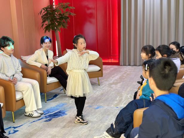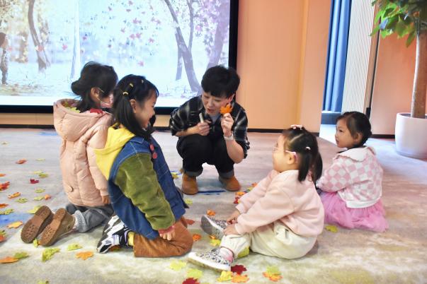 用戏剧探索世界,能够在“玩”中提高孩子的沟通、表达能力,潜移默化地影响孩子的行为习惯,帮助他们更好地认识世界,表达自己的情绪。11月26日,国家二级演员、“江苏戏剧奖红梅奖”优秀表演奖获得者核桃妈妈带来了“神奇的糖球”亲子戏剧故事会。小朋友们与父母共同踏上了奇妙的戏剧故事之旅,以绘本故事为桥梁,在“肢体表演”“情绪表达”“角色扮演”等游戏环节中展开了想象的翅膀,学会了沟通与表达。