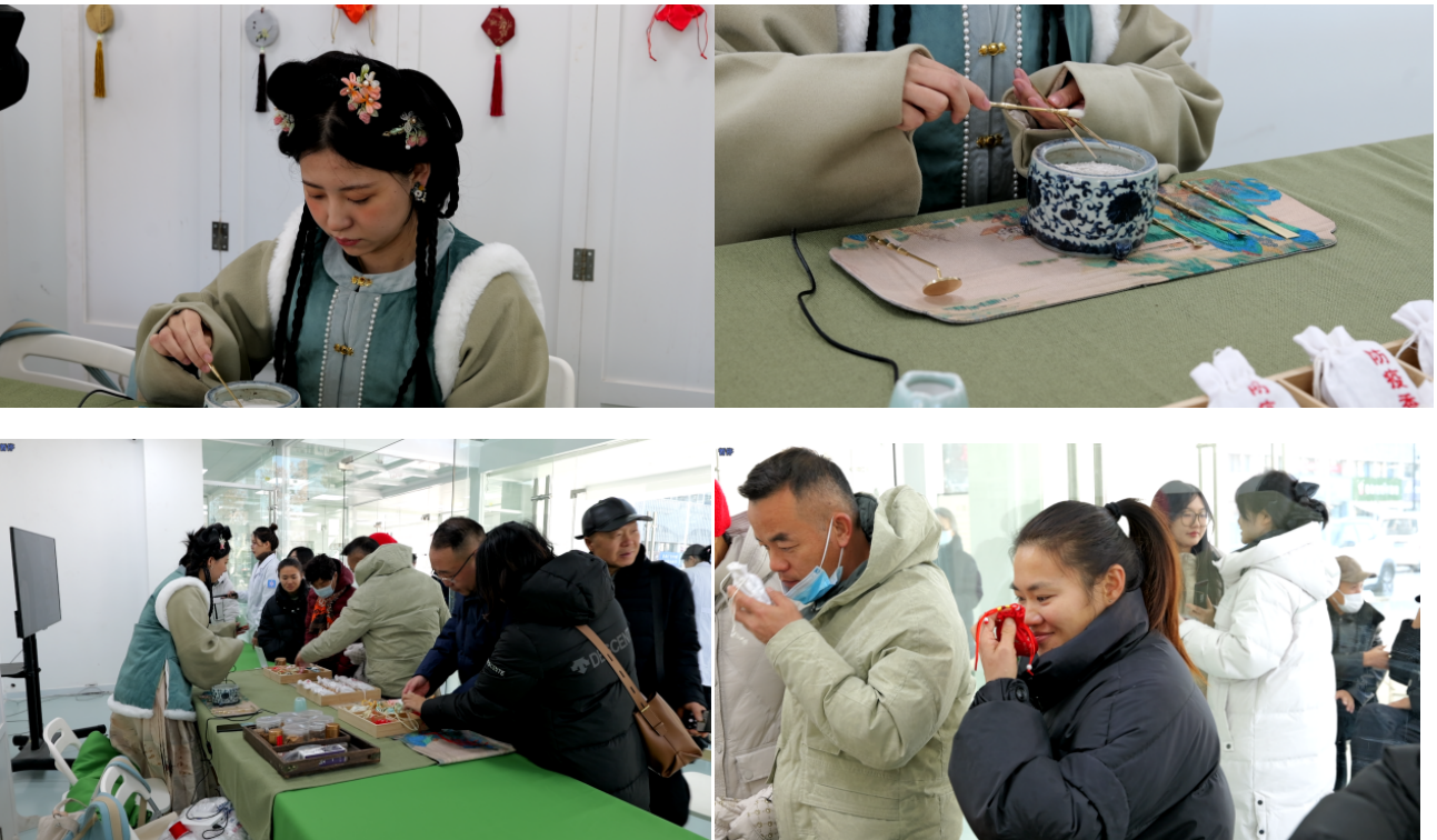 活动现场,还有国医大师周仲瑛防疫香囊、非遗线香、熏香的现场制作与科普,为观众讲解香囊的防疫作用、原理、使用方法以及线香的制作工艺与作用。