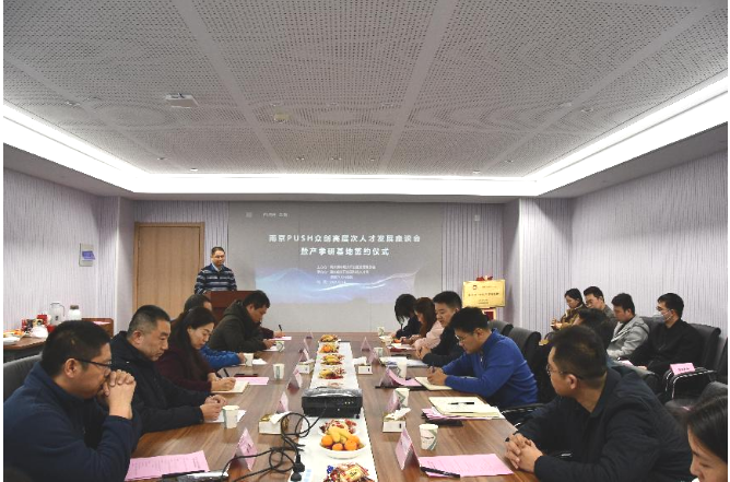 近日,开发区高层次人才发展座谈会暨PUSH众创产学研基地签约仪式在溧水经济开发区汇智产业园科创大厦A座成功举办。此次活动由溧水经济开发区管理委员会主办,溧水经济开发区科技人才局、南京PUSH众创承办。