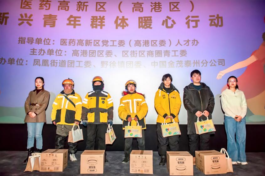 代表发言后,凤凰街道党工委副书记耿艳和金茂周山河项目大客户经理陆泠言为新兴青年群体送上慰问礼品。